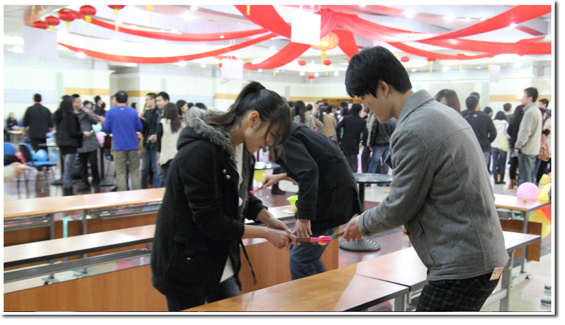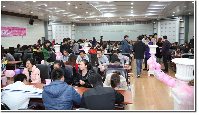 三楼多功能厅是“心有灵犀”互动游戏区,其中分有三个小区,即“爱情闯关区”、“甜蜜休息区”和“幸福照相馆”。丰富有趣的互动小游戏为大家提供了一个互动合作、相互交流、邂逅美丽的平台,每个小分区的参与同学都洋溢着开心的笑容,一些同学更是人在活动中收获了自己的爱情。