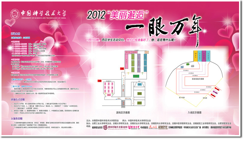 又是一年邂逅时,莫等韶华已逝,莫等无花折枝,相聚2012美丽邂逅,不一样的心动,不一样的浪漫。11月11日晚,由中国科学技术大学校研究生会举办的大型交友类活动——2012“美丽邂逅”之“一眼万年”在西区学生活动中心华丽绽放。活动汇集了来自中国科学技术大学、合肥工业大学、安徽大学、安徽农业大学、安徽医科大学、安徽中医学院、安徽建筑工业学院、合肥学院等高校的众多同学相聚一堂,邂逅美丽,现场十分火爆。